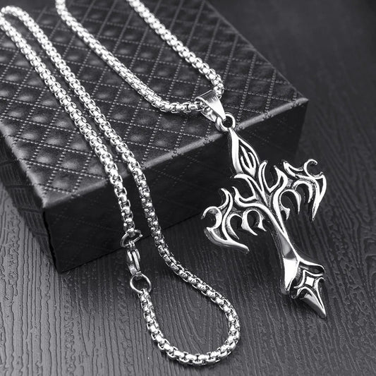 ÉCONOMISER [pourcentage]Stainless Steel Necklace Flame Retro Cross Titanium Steel Casting Men Pendant Necklace Type